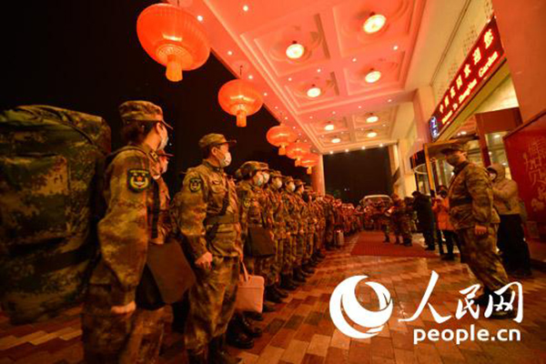 除夕夜!出征夜!1月24日晚,经中央军委批准,解放军派出3支医疗队共450人分别从上海、重庆、西安三地乘坐军机出发,于当晚23时44分全部抵达武汉机场。(图片来源:人民陆军微信公众号)
