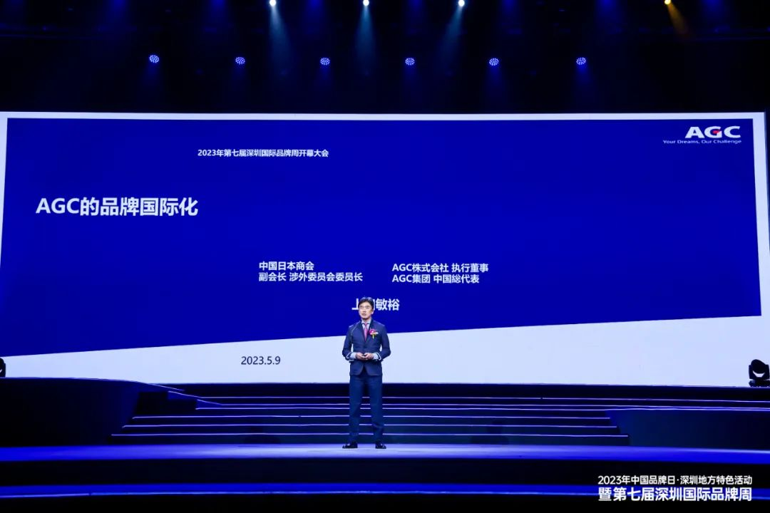 上田敏裕会长围绕“AGC的品牌国际化”发表主题演讲。AGC品牌从树立到统一确定花了30年。品牌的建立只有一个途径,就是“认真的做产品,给客户提供非常优秀的产品”。中国已成为创新大国,深圳更是创新的发源地,荣获“深圳知名品牌日本原产”奖项也是AGC在中国开展品牌推广的原点,希望在深圳这个地方让大家了解AGC这个品牌。同时,希望未来可以看到更多的优秀中国品牌通过更好的品牌推广走向世界。