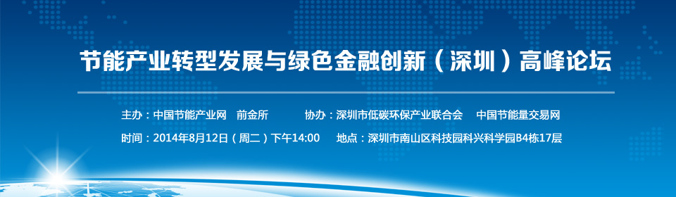 在此形势下,由中国华体会网页版登录入口、前金所联合主办,由深圳市低碳环保产业联合会、中国节能量交易网协办的“节能产业转型发展与绿色金融创新(深圳)高峰论坛”将定于2014年8月12日下午在深圳举办。