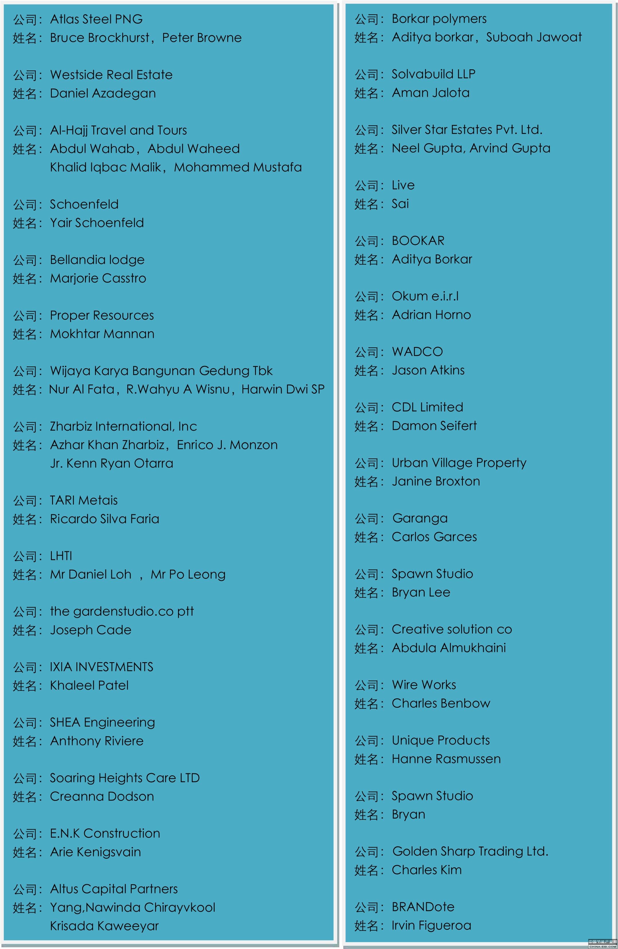 7.各省市规划局、建设局、旅游局等政府机构相关负责人;各国驻华使馆商务处、境外在华贸易机构及境外相关客户;
