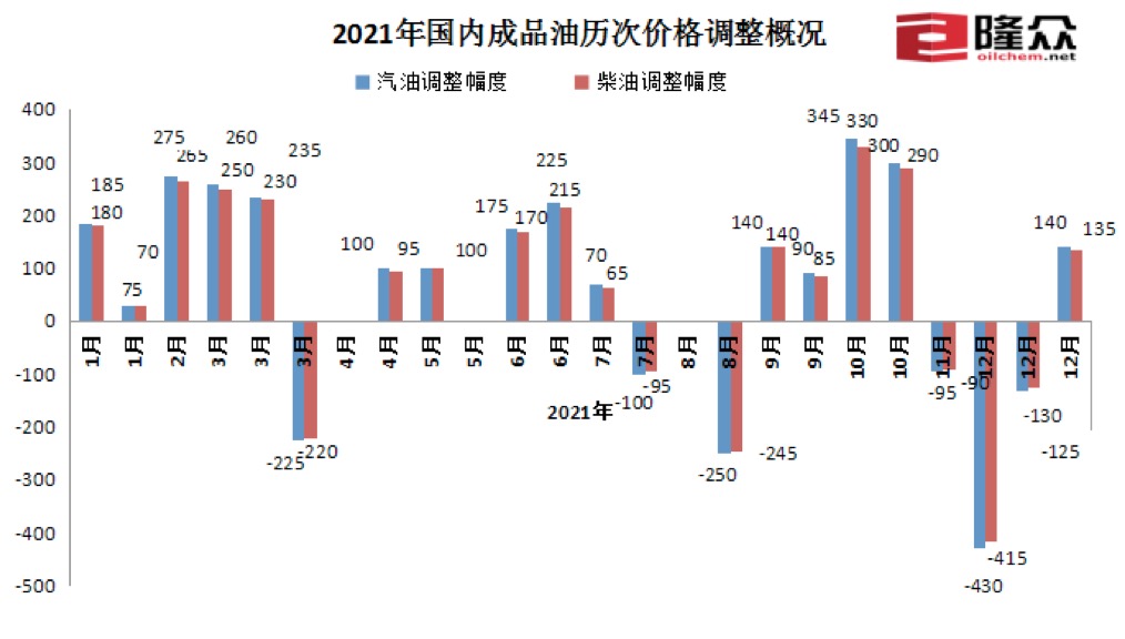 国家发改委12月31日傍晚发布消息,根据近期国际市场油价变化情况,按照现行成品油价格形成机制,自2021年12月31日24时起,国内汽、柴油价格(标准品)每吨分别提高140元和135元。折合升价,92#汽油、95#汽油及0#柴油分别上调0.11元、0.12元、0.11元。