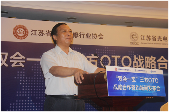 远东买卖宝网络科技有限公司总经理孙录、江苏省光电线缆商会秘书长韩延成、江苏省装饰装修行业协会会长王有党出席了新闻发布会并发表致辞,就三方战略合作联动新模式进行深度解读。