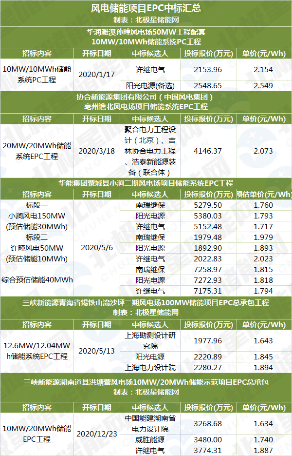 北极星储能网获悉,中能建湖南院单价1.634元/Wh中标三峡新能源湖南道县洪塘营风电场10MW/20MWh储能示范项目EPC总承包工程,再创风电储能EPC单价最低记录!