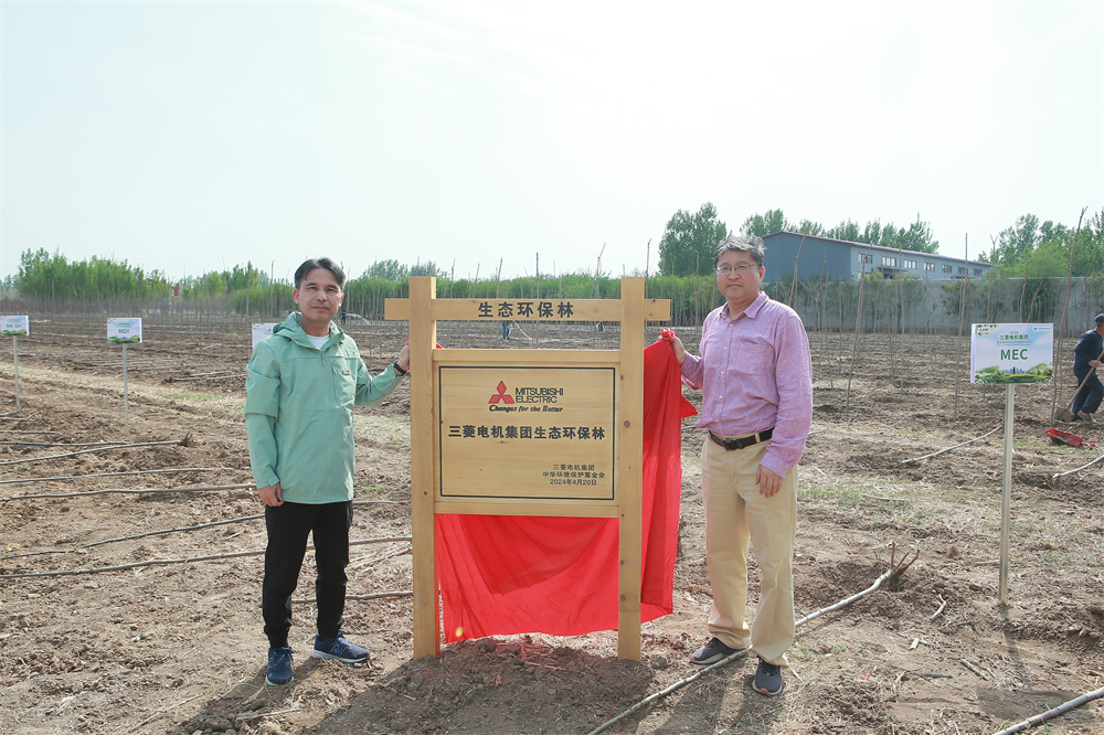 活动当天,三菱电机株式会社中国总代表、三菱电机(中国)有限公司董事长兼总经理小柳津裕先生(以下简称“小柳津总代表”)、中华环境保护基金会副秘书长房志先生共同为“三菱电机集团生态环保林”植碑揭幕。小柳津总代表在致辞时提到,国家领导人期望将雄安新区打造成国际一流、绿色、现代、智慧的城市,生态优先是其中的重要内容,这需要大批企业的共同参与。作为第一家进入雄安新区开展环保活动的外资企业,三菱电机期望在科技创新、绿色发展等多个领域,发挥自己的技术和事业优势,为雄安新区的建设贡献出自己的绵薄之力。同时,三菱电机以这次的生态环保活动为契机,加强与中华环境保护基金会、雄安集团的深度合作,进而为中国社会的绿色发展作出更大贡献。