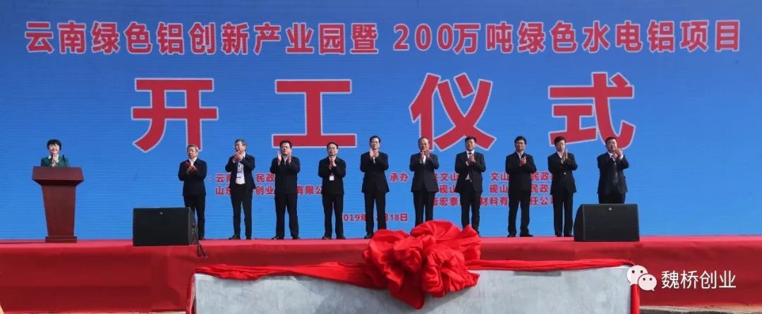 全球最大铝企山东魏桥创业集团官方微信显示,12月18日上午,云南省人民政府、魏桥创业,在云南省文山州砚山县举行云南绿色铝创新产业园暨200万吨绿色水电铝项目开工仪式。