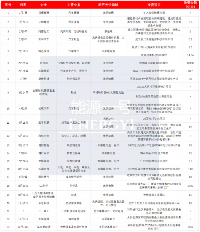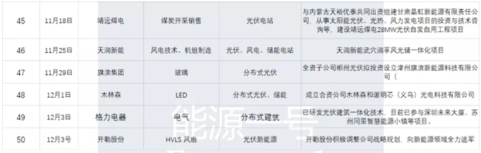 据下表可见,进入电池及组件领域的包括华阳集团、星帅尔、长城汽车、明阳智能、金刚玻璃、华润电力、金阳新能源(原宝峰时尚)等。