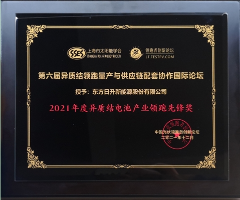 1月13日,“第六届异质结领跑量产与供应链配套协作国际论坛”在无锡圆满落幕,全球异质结领域顶级机构与领跑企业齐聚盛会,探索平价时代异质结技术的发展新契机。高功率组件技术领先企业东方日升受邀出席活动,并凭借高效N型电池技术与一体化实力,同时荣膺“2021年度异质结电池产业领跑先锋奖”、“2021年度异质结电池组件最佳供应商”。