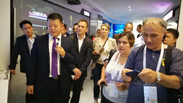10月23日下午,澎湃新闻(www.thepaper.cn)随40余位各国标准化领域技术专家一同走进技术参观点之一——上海仪电(集团)有限公司。在智慧城市建设浪潮下,上海仪电集团近年来顺应国际产业发展潮流及上海城市功能定位,转型为智慧城市整体解决方案提供商与运营商。